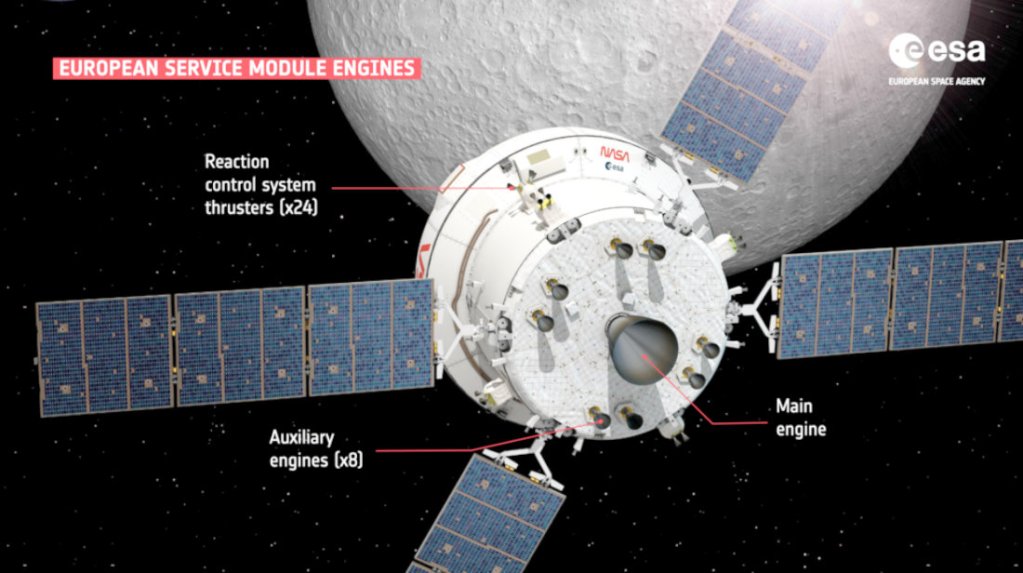 Das Europäische Servicemodul bildete das technische Rückgrat der Mission. Es stellte nicht nur Strom, Luft und Wasser bereit, sondern regelte auch die Temperatur und lieferte den Antrieb für alle entscheidenden Flugphasen. Ein Haupttriebwerk übernahm die großen Geschwindigkeitsänderungen, unterstützt von acht Hilfstriebwerken für Kurskorrekturen und 24 kleineren Steuerdüsen zur präzisen Ausrichtung im Raum. Entwickelt und gebaut unter Führung der ESA, koordiniert von Airbus in Bremen und getragen von einem Netzwerk aus Unternehmen in 13 europäischen Ländern, lief das System während der gesamten Mission stabil.