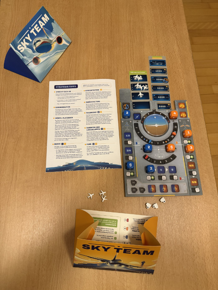 Ein Cockpit Spiel für Zuhause. Das muss ich sofort ausprobieren. Skyteam heißt das ursprünglich in Frankreich entwickelte Spiel für zwei Player. 2024 war es das Spiel des Jahres.