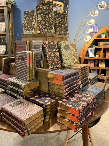 Sieht auf den ersten Blick aus wie eine Sammlung (leerer) Paperblank Notizbücher. Steht aber viel Gedrucktes drin: Klassiker wie die Bücher von Jane Austin, Moby Dick, Treasure Island (Die Schatzinsel), 1984 (George Orwell) oder Silas Marner (George Elliot) in der englischen Originalfassung.