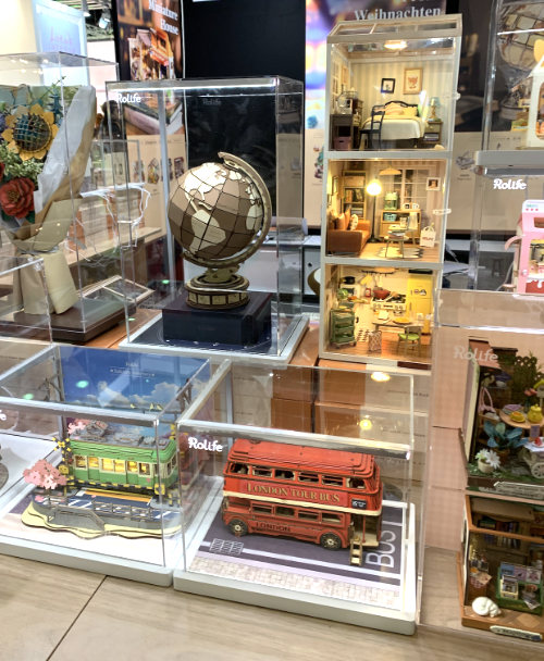 Ein dreidimensionales Zimmer en miniature im quadratischen „Schuhkarton“. Die Setzkästen des chinesischen Herstellers bastelt man selber aus einigen größeren Teilen zusammen.
