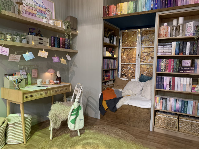 …in der neuen Halle 1.2, deren Schwerpunkt auf Bücher aus den Genres New Adult, Romantasy, Dark College und Fantasy liegt. Hier fanden an den Fachtagen zahlreiche Veranstaltungen zu kreativem Schreiben und Self-Publishing statt. Am Wochenende treffen hier Fans dieser Genres ihre Lieblingsautor*innen.