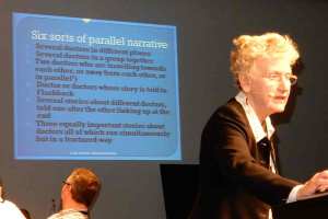Linda Aronson ist international gefragt für ihr Wissen und ihre Gedanken zum modernen Storytelling. Aronson will keine linear erzählten Geschichten mehr, der alt bewährte und noch aus der Antike stammende 3-Akt-Aufbau ist ihr nicht mehr zeitgemäß. Sie will paralleles Erzählen, beginnen schon mal mit dem Mittelteil und einem sehr viel früheren Wendepunkt der Geschichte.