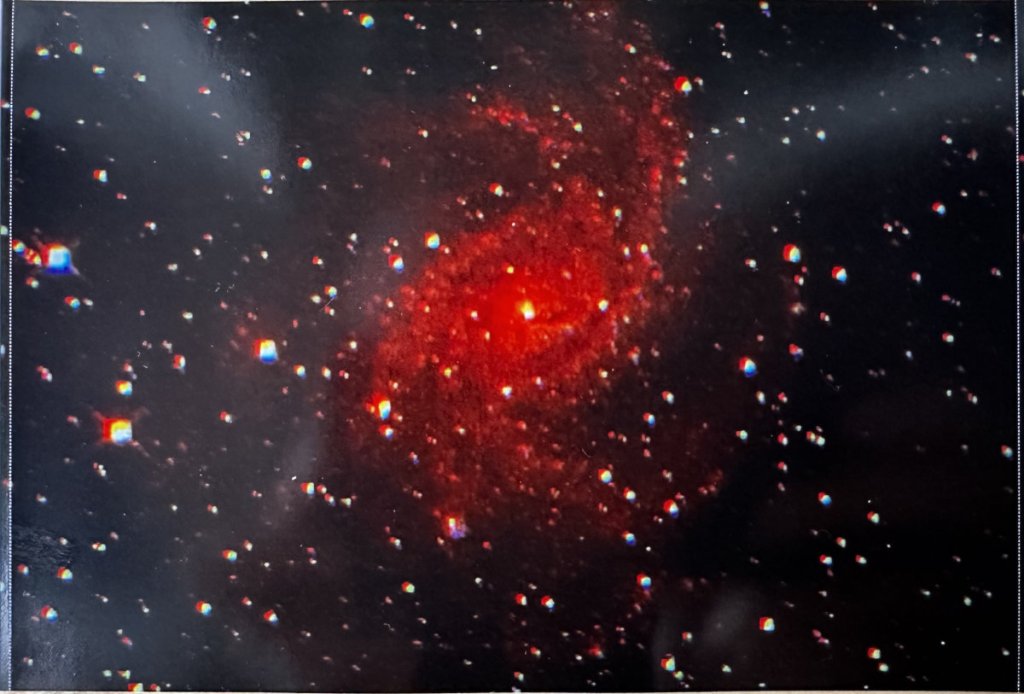 Jedenfalls zeigt das Foto die Galaxie, auf die wir das Teleskop letztendlich programiert, die Schärfe und Farbe zur besseren Sichtbarkeit individuell eingestellt hatten.