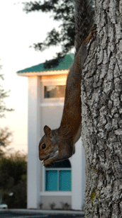 Und jetzt zu den Eichhörnchen. Denn, während der Springer abends endlich in einem Restaurant etwas Vernünftiges zwischen die Kiemen bekommt, gibt es auch andere Lebewesen, die ihr Dinner geniessen.