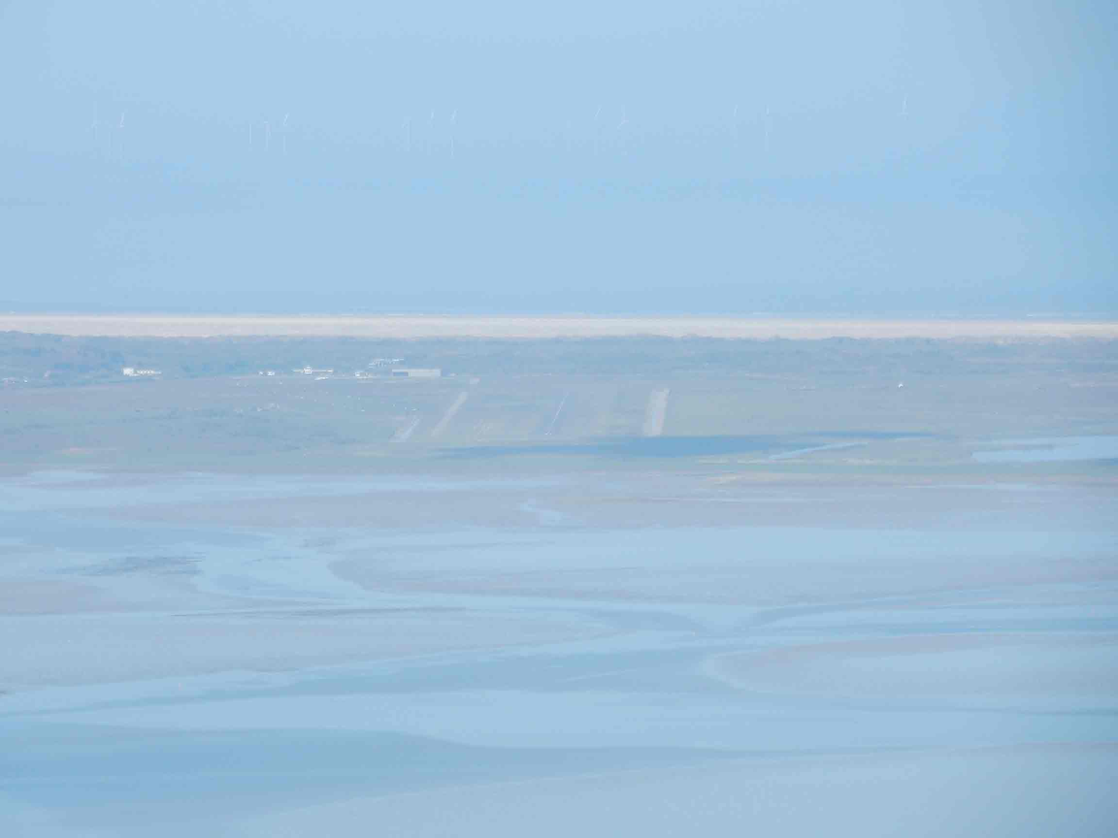 Ich wollte nach dem Abflug unbedingt die Windradfelder in der Nordsee sehen, wenn schon so viel darüber diskutiert wird. Eine vorherige Nachfrage am Tower und ein Blick in die Karte ergab, dass der Luftraum wohl von den Niederländern kontrolliert wird und man eigentlich dafür – zumindest aus holländischer Sicht – einen Flugplan braucht. Die Hiesigen sehen das aber als Geldschinderei, weil es vor allem die großen Hubschrauber, die kommerziell zu den Windrädern fliegen, trifft und die gehörig bezahlen müssen. Daher das aus Fotografensicht „Mückensch….-Bild“.
