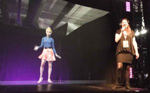 Maya komponiert ihre eigenen Songs, tanzt, singt und unterhält sich mit der Moderatorin. Manchmal vervielfältigt sie sich auch und dann wirbeln mehrere geklonte Mayas gleichzeitig und 100 Prozent synchron auf der Bühne.