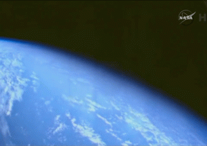Der „Raise Burn“ (links) der Thruster (Steuerdüsen) diente zur Ausrichtung der Orionkapsel für den Wiedereintritt.