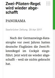 Wie bitte? Haben sich jetzt die Flugzeughersteller durchgesetzt und es braucht nicht mehr Kaptän und Co-Pilot zum Fliegen eines Verkehrsflugzeuges? Die Krux an der Geschichte war doch, dass Nicht-Piloten dann im Cockpit für „Sicherheit“ sorgen sollten.