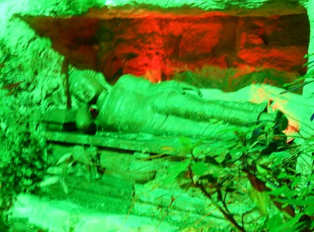 An einem beeindruckenden Wasserfall guckt der Besucher von einem Felsplateau auf die Pflanzenwelt rundum und darunter und zu einem chinesischen Teepavillon. In der felsigen Gebirgslandschaft des Himalaja liegen versteckt inmitten der Pflanzenvielfalt asiatische Original-Exponate wie Gebetsmühlen oder der ruhende Buddha.